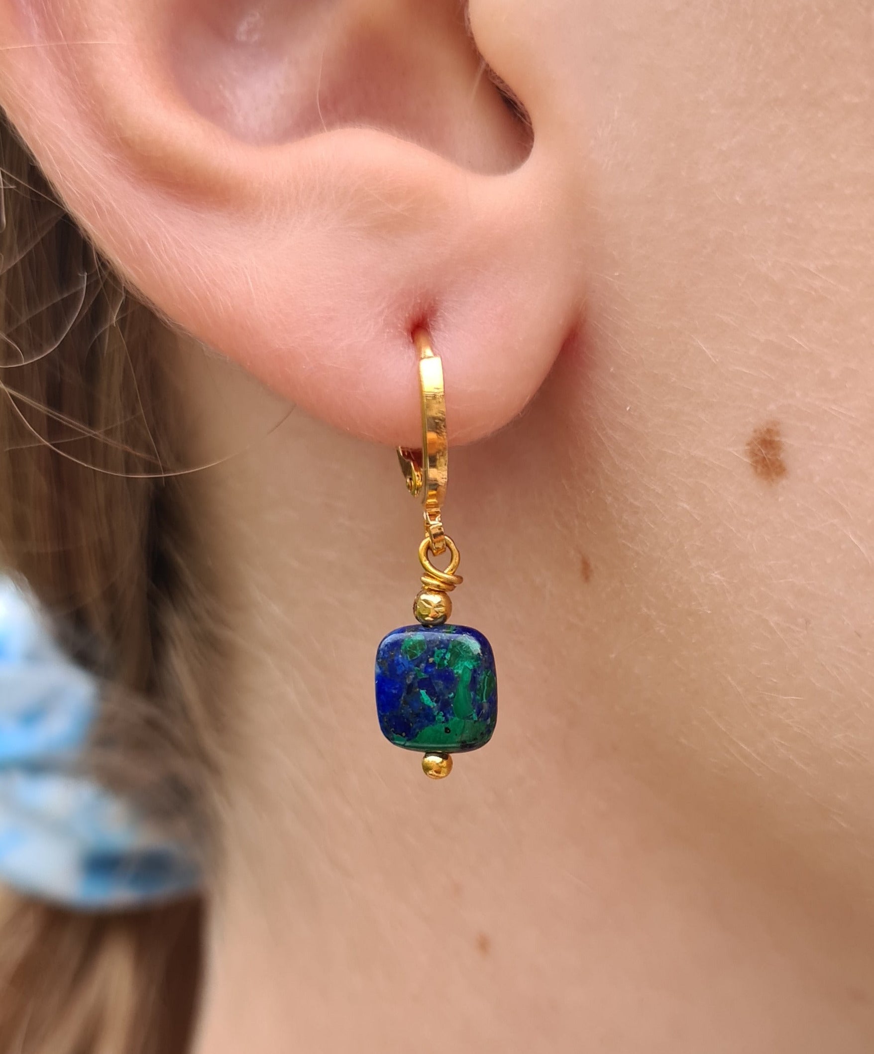 Boucles d'oreilles "Éléa" Azurite malachite dorées à l'or fin 24kt