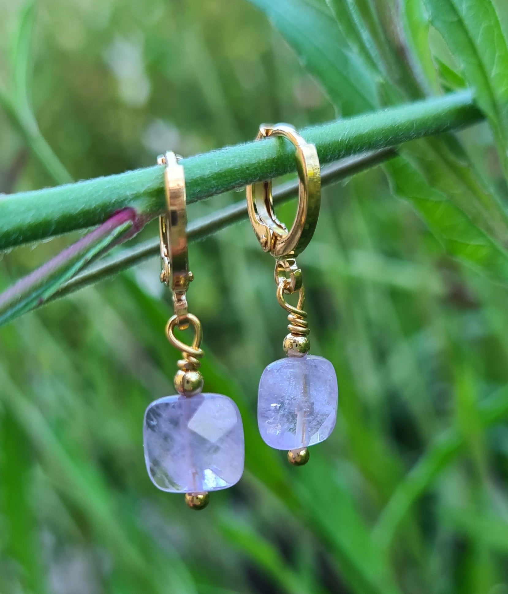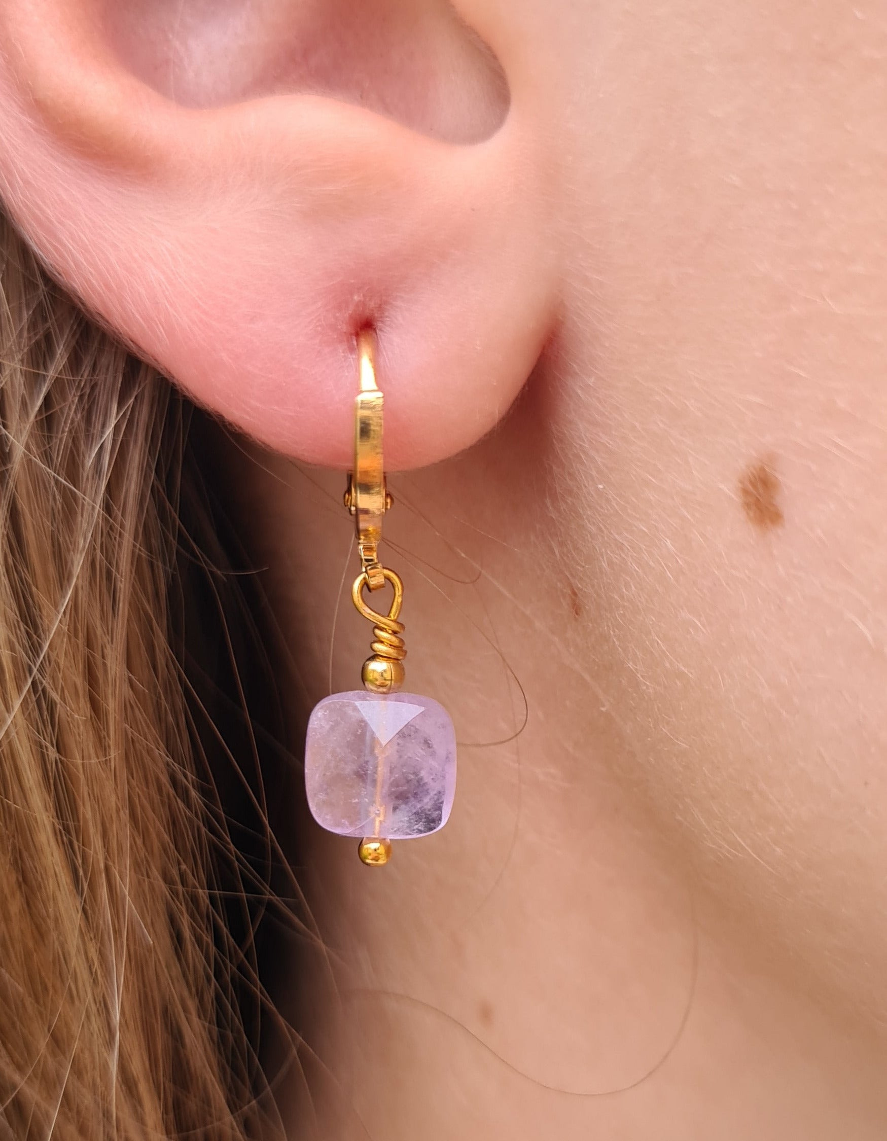 Boucles d'oreilles "Éléa" Amethyste dorées à l'or fin 24kt