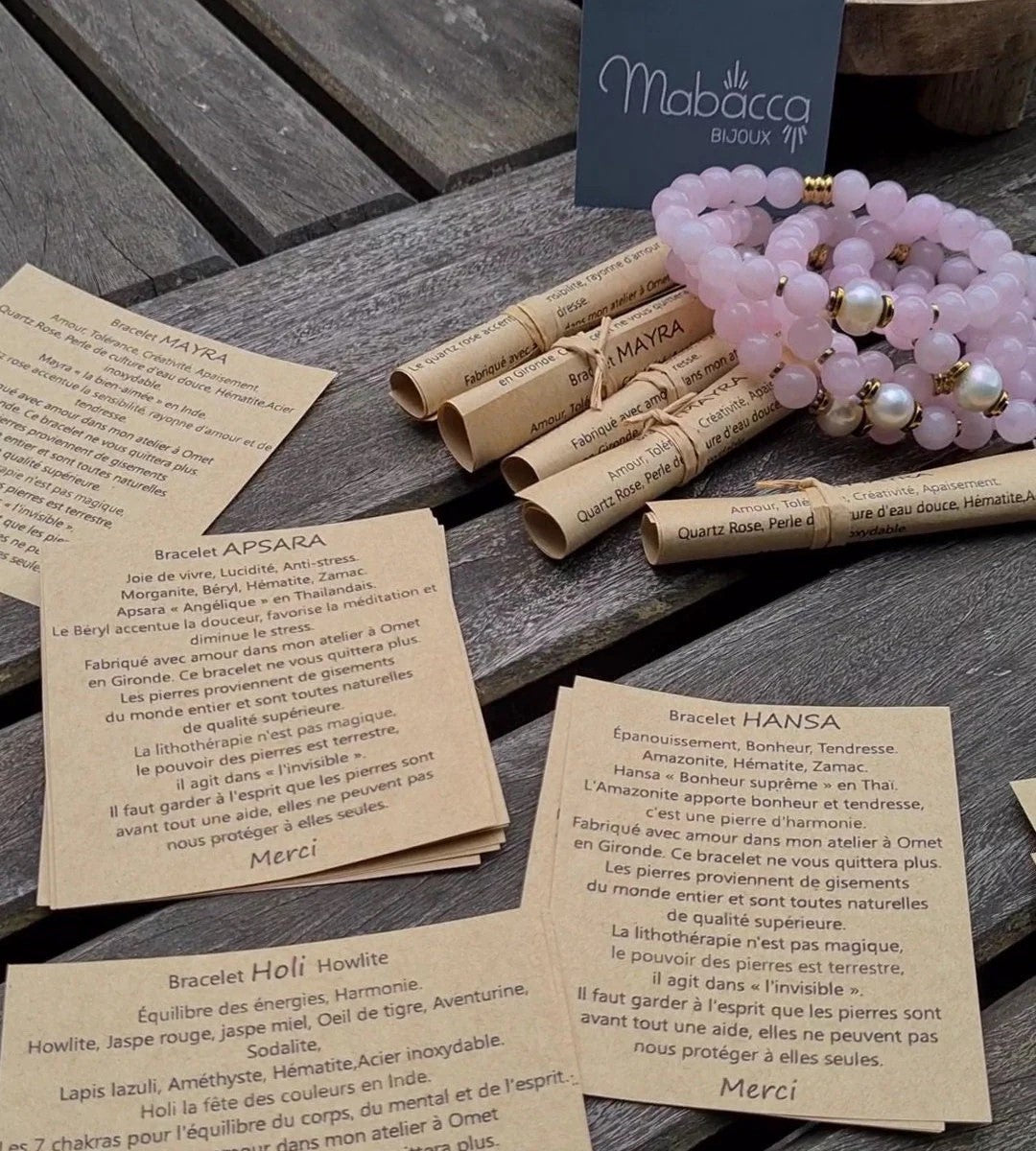 Votre bracelet sera livré dans sa pochette en lin et son parchemin explicatif.